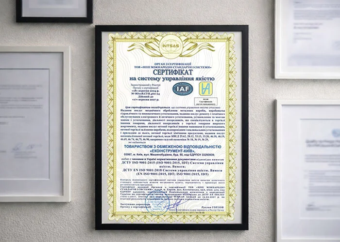 Сертифікат про відповідність системи управління якістю продукції