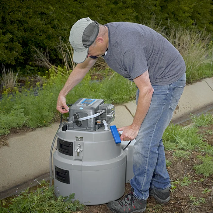 Портативний пробовідбірник здійснює відбір рідких зразків із заданими інтервалами та зберігає проби у пляшках. Пробовідбірник використовується для виконання найрізноманітніших робіт, пов’язаних з відбором водних проб та лабораторним аналізом на вміст отруйних забруднюючих речовин та суспензій твердих речовин. Швидко перемикайтеся між композитним і дискретним відбором проб у полі. Інтуїтивно зрозумілий інтерфейс дозволяє програмувати на одному екрані, а також дає можливість копіювати програми з одного
