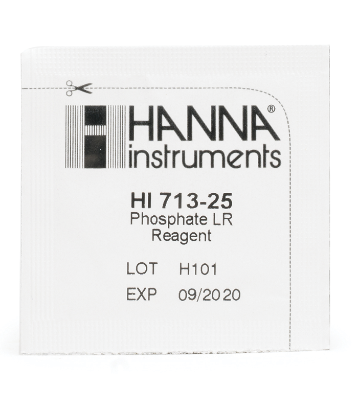 HI713-25 – це високоякісні реагенти, які попередньо відміряно, що дозволяє користувачам швидко та точно проводити вимірювання за допомогою Phosphate Low Range Checker® HC. Ці реагенти використовують метод аскорбінової кислоти, при якому реакція між фосфатом і реагентом викликає синій відтінок в зразку. Просто додайте пакет реагенту HI713-25 в пробу, відбудеться реакція, і HI713 визначить концентрацію по кольору, що з’явився. Результати будуть відображатися в проміле (мг / л) фосфатів. Ці реагенти призначені для використання зі зразками, в яких очікуваний діапазон фосфатів складає від 0,00 до 2,50 ppm.
