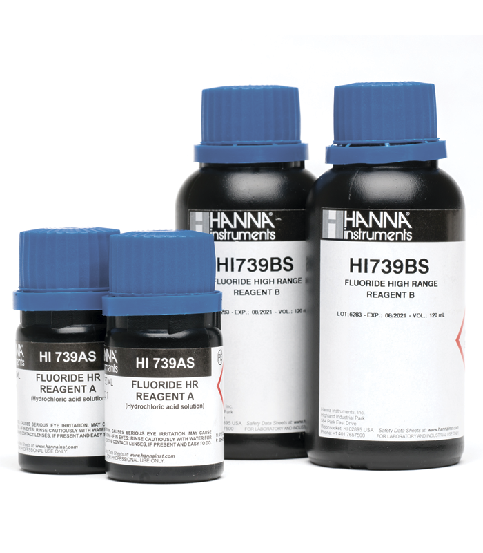 HI739-26 – це високоякісні реагенти, які попередньо відміряно, що дозволяє користувачам швидко та точно проводити вимірювання за допомогою приладу Fluoride High Range Checker® HC. Ці реагенти працюють за методом SPADNS, при якому реакція між фтором та реагентом викликає утворення безбарвного комплексу в зразку. Просто додавши 2 мл реагенту SPADNS у дві кювети, потім 8 мл другого реагенту в одну і 8 мл зразка в іншу, відбудеться реакція, і HI739 визначить концентрацію по кольору, що з’явився. Результати будуть відображатися в проміле фториду. Ці реагенти призначені для використання зі зразками, в яких очікуваний діапазон змісту фториду становить від 0,0 до 20,0 ppm (мг / л).