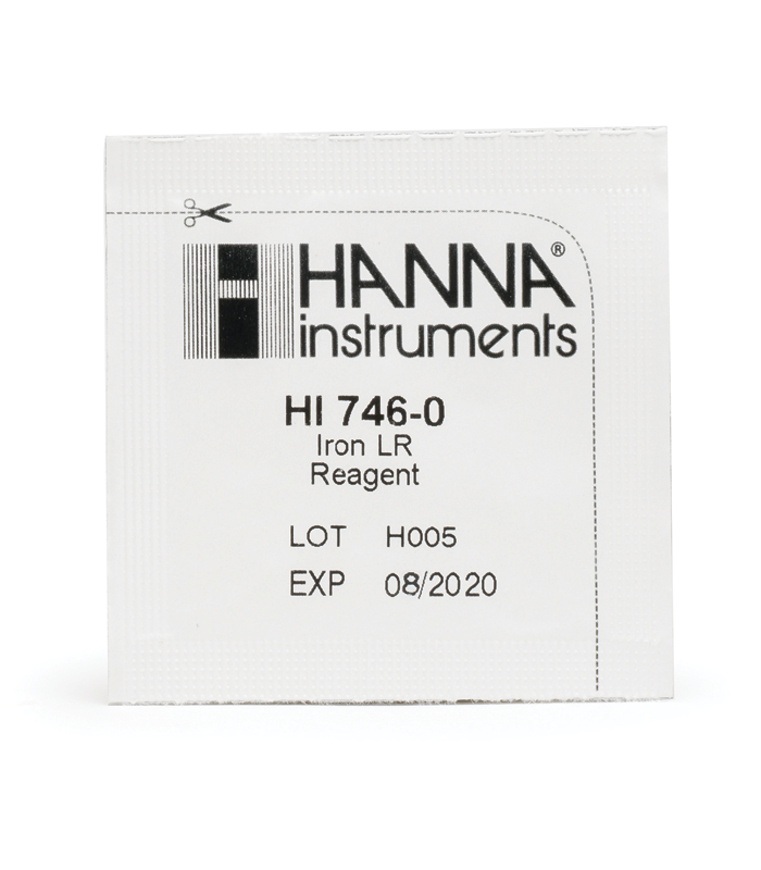 HI746-25 – це високоякісні реагенти, які попередньо відміряні, що дозволяє користувачам швидко та точно проводити вимірювання за допомогою Iron Low Range Checker® HC. Ці реагенти відповідають методу TPTZ, при якому реакція між залізом та реагентами викликає фіолетового відтінку в зразку. Просто додавши пакети з реактивами HI746-25 в зразок, реакція відбудеться, і HI746 визначить концентрацію по кольору, що з’явився. Результати будуть показані в ppb заліза. Ці реагенти призначені для використання зі зразками, в яких очікуваний діапазон вмісту заліза становить від 0 до 999 ppb.