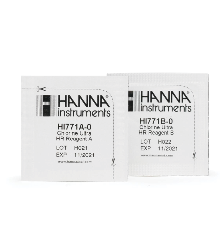 HI771-25 – це високоякісні реагенти, які попередньо відміряні, що дозволяє користувачам швидко і точно проводити вимірювання за допомогою приладу Total Chlorine Ultra High Range Checker® HC. Ці реагенти відповідають методу DPD, при якому реакція між хлором і реагентом викликає рожевий відтінок в зразку. Просто додайте пакет реагенту HI771-25 в пробу, відбудеться реакція, і HI771 визначить концентрацію по кольору, що з’явився. Результати будуть відображатися в проміле загального хлору. Ці реагенти призначені для використання зі зразками, в яких очікуваний діапазон змісту загального хлору становить від 0 до 500 ppm.