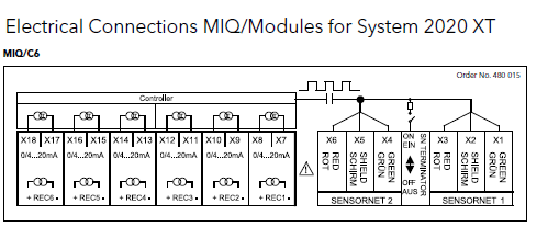 | Мережеві підключення датчика IQ | Підключення терміналів для IQ Sensor Net доступні на кожному модулі та можуть використовуватися за потреби: - для підключення датчиків - як вхід / вихід або для проходу/розгалуження кабелю IQ Sensor Net |