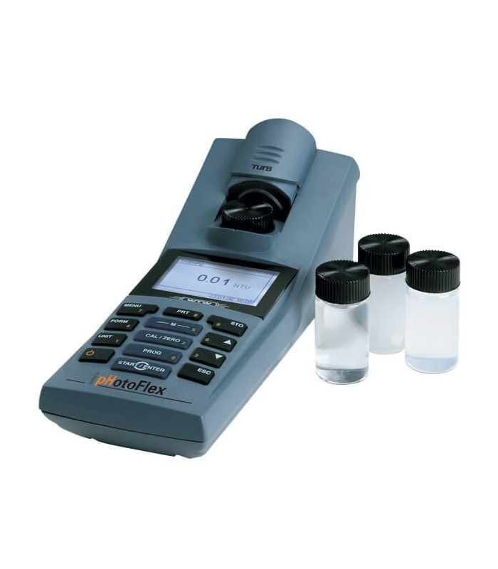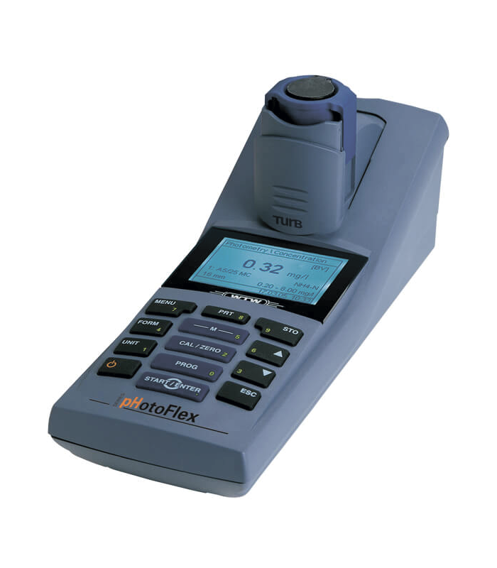 pHotoFlex Turb – портативний фотометр від компанії WTW призначений для моніторингу навколишнього середовища, оцінки якості процесів водоочищення та водо підготовки, використання в галузі аквакультури. Фотометр містить понад 150 запрограмованих методів(серед яких також спеціальні методами NH3, CO2), а також дозволяє користувачам створювати власні методики вимірювання. Енергоефективна світлодіодна оптика забезпечує вимірювання на шести довжинах хвиль.