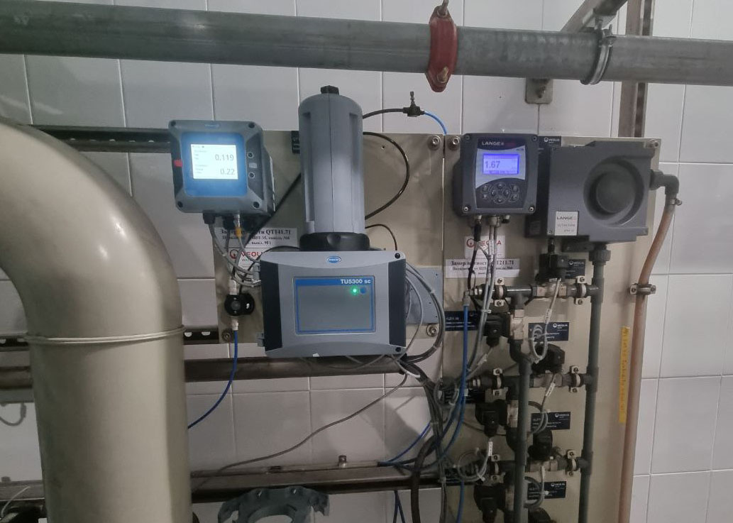 - На лінії вхідної води встановлено лазерний мутномір TU5300sc та виконано повне налаштування та перевірку точності вимірювань за допомогою високоточних формазінових стандартних розчинів у віалах від HACH (LZY901 та LZY898).