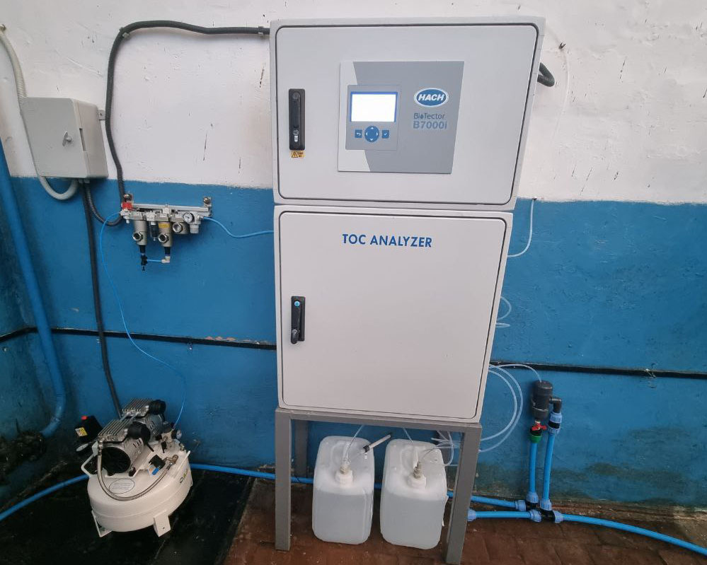 Загальний органічний вуглець (TOC) є одним з ключових показників органічного забруднення, яке може впливати на якість води та призводити до утворення небезпечних сполук під час хлорування. Відтак контроль цього параметру критично важливий для оцінки якості води. Для ефективного моніторингу вмісту ТОС було встановлено промисловий аналізатор BIOTECTOR B7000i в місці водозабору річкової води з Південного Бугу.